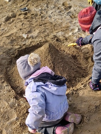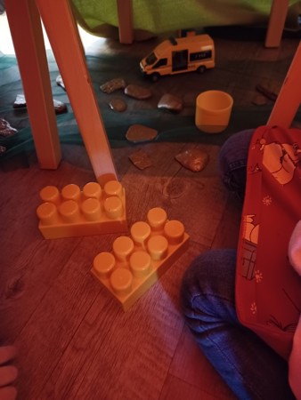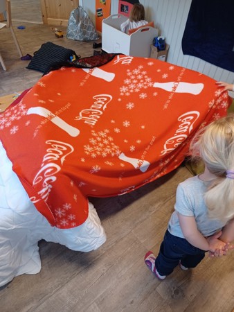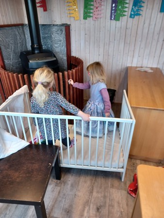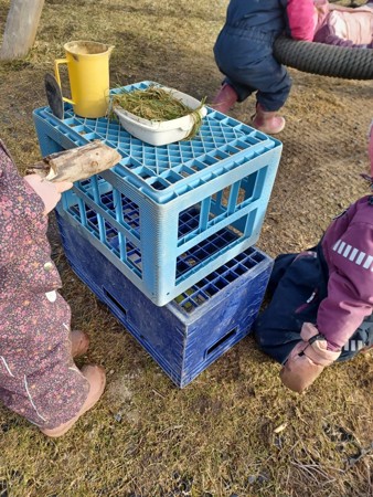 Denne dagen har vi hatt et ekstra stort fokus på leken på barnas premisser. Etter frokost fikk barna bestemme om de ville leke inne eller ute, og barna har fått styrt leken på sin måte. Inne har vi bygget hytter, hus og kattebur. Det har vært mye rollelek, utkledning og barna har også lekt bursdagssamling inspirert av hvordan vi gjennomfører disse i barnehagen. Konstruksjonslek har vi hatt både inne og ute i form av lego og å bygge fjell i sandkassen.