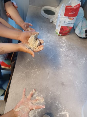 Mange små og store prosjekter har vi hatt, barna er kreative og har stadig nye ideer om hva de ønsker å gjøre. Egenlagde veier ble malt til bruk i sandkassen, slik at bilene hadde vei og kjøre på. Vi har også lagd mye god mat, der barna har vært delaktig i både baking, kutting og annen matlaging. Og alt smaker jo ekstra godt når man har vært med å lagd maten selv.